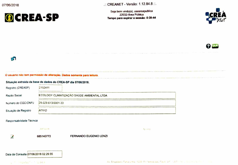 Certificado CREA - Ecology Climatização